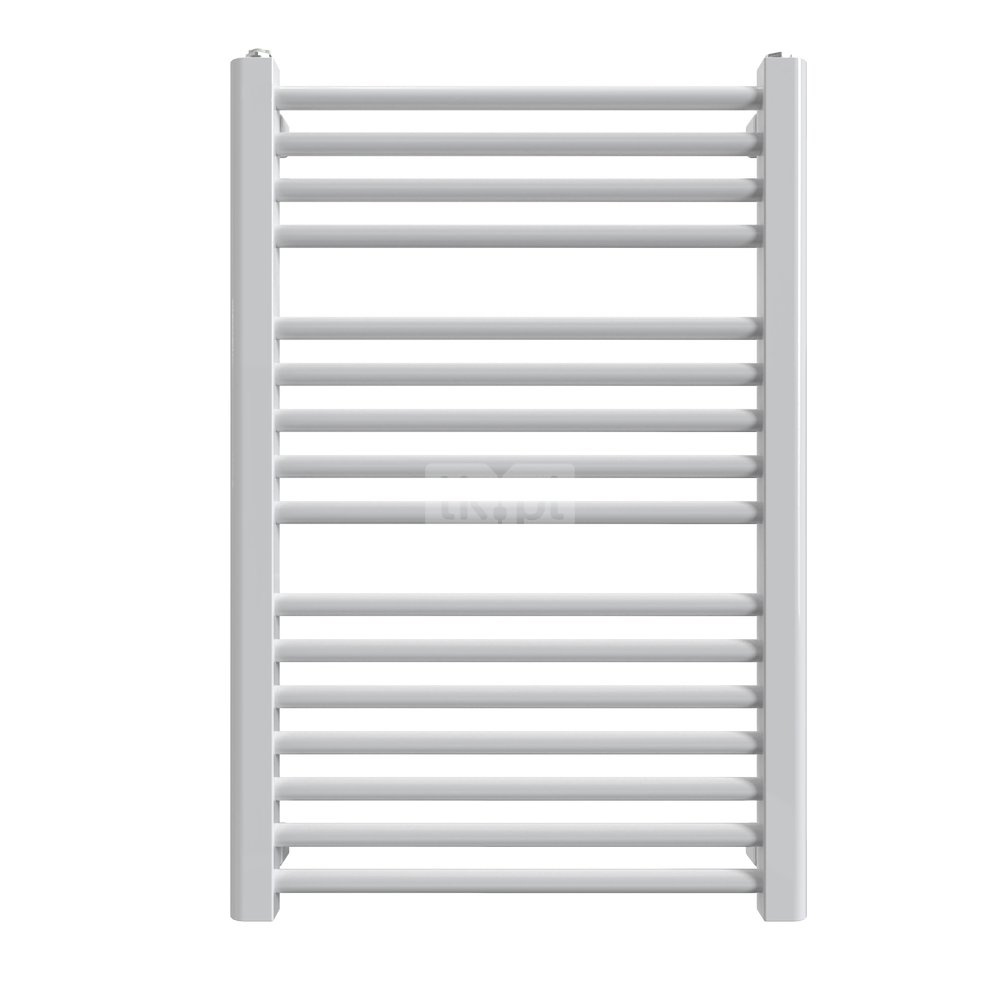 Grzejnik łazienkowy w kolorze białym. Typ: GRN - grzejnik pionowy łazienkowy. Materiał: stal niskowęglowa niestopowa. Konstrukcja: kolektor profil "D" 40 x 30, rury DN 20. Wysokość: 620, 740, 940, 1180, 1340, 1500, 1700, 1820 mm, szerokość: 400, 500, 600 mm. Ciśnienie robocze do 1,0 MPa. Temp. pracy do 95°C. Wyposażenie standardowe: korek 1/2", odpowietrznik 1/2", zawieszenie grzejnikowe typ Z 13. Wykończenie powierzchni: kolor biały. Przyłącza 1/2" GW.