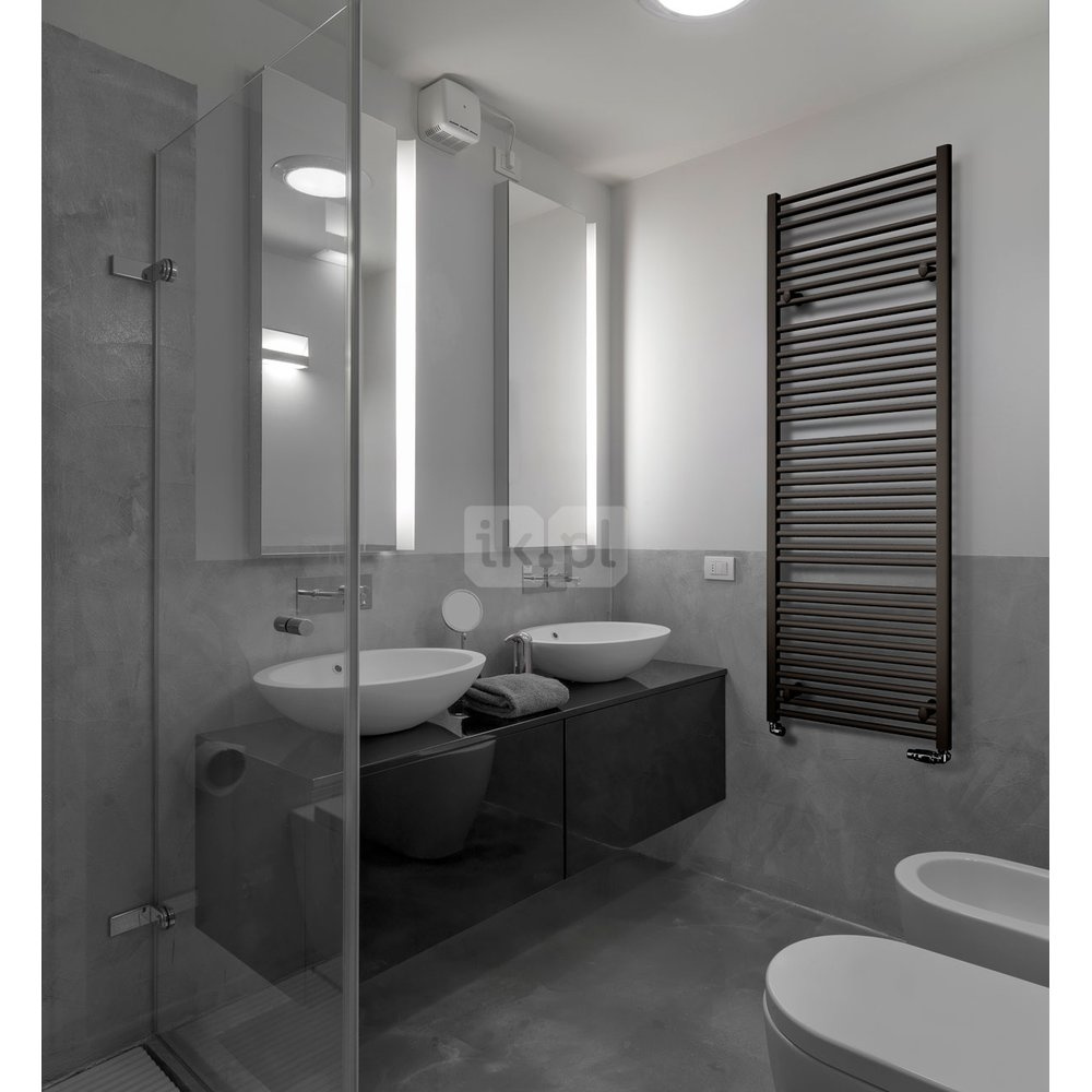Model Pini P dostępny jest w wersji z grzałką (max 300 W), a na zamówienie również w wersji elektrycznej. Można także zdecydować się na dodatkowe wyposażenie w postaci praktycznego wieszaka ułatwiającego wieszanie ręczników. Urzeka lekkością i prostotą formy, a jego montaż jest łatwy i intuicyjny. Nadaje się doskonale zarówno do aranżacji tradycyjnych, jak i nowoczesnych. Dzięki dostępności różnych wariantów kolorystycznych z palety RAL i ENIX bez trudu można dopasować go do stylistyki jasnych i ciemnych łazienek.