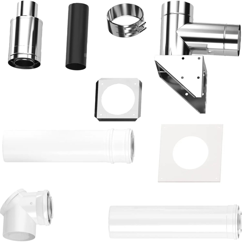 Zestaw podstawowy C53x (2564), zestaw powietrzno-spalinowy fi80/125 z do prowadzenia przewodów pionowych po fasadzie budynku, do podłączenia od góry kotła tworzywo polimerowe PP /stal /stal nierdzewna