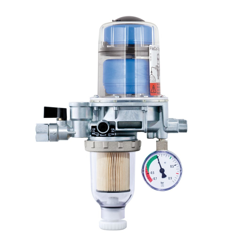 Filtr olejowy AFRISO FloCo-TOP-2KM MC-7zintegrowany z odpowietrznikiem fi 3/8''/3/8'' GW x GZ, z wkładem opticlean, maks. przepływ 100 l/h