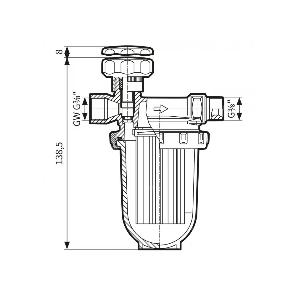 Filtr olejowy AFRISO V500Stjednorurowy fi 3/8''/3/8'' GW x GZ, z wkładem stalowym, maks. przepływ 320 l/h