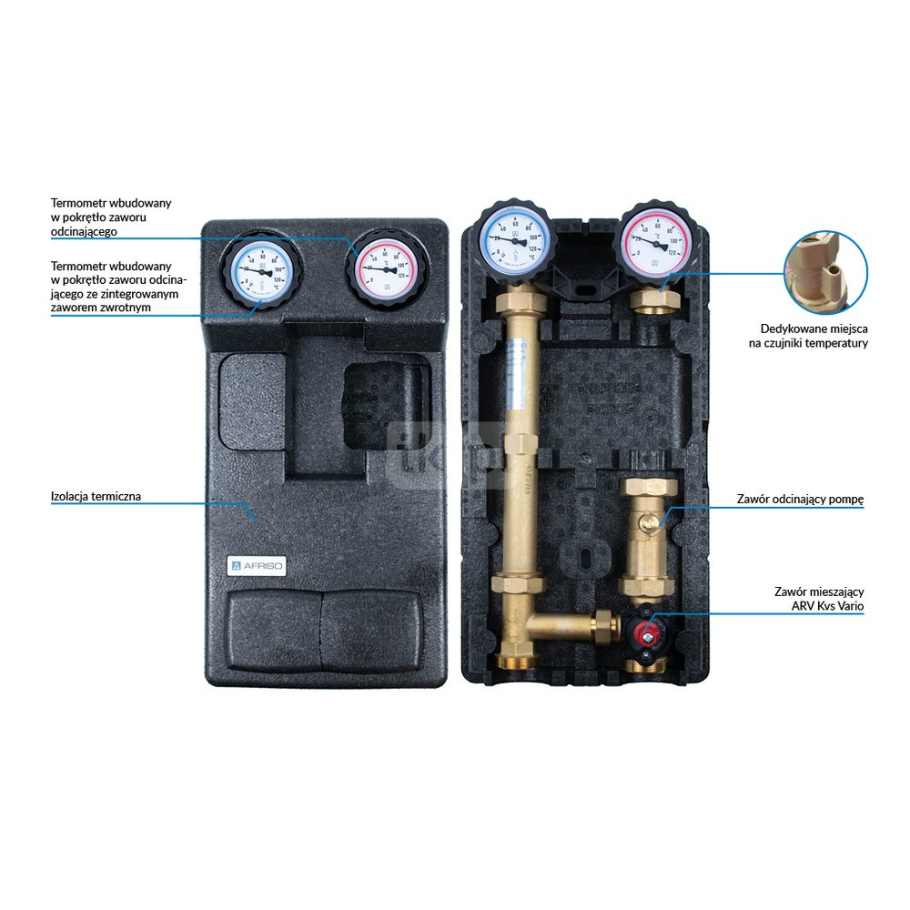 Grupa pompowa AFRISO PrimoTherm 180-2 DN25 3-WM Vario GZ x GW 1 1/2'' x 1'', z zaworem mieszającym, z izolacją