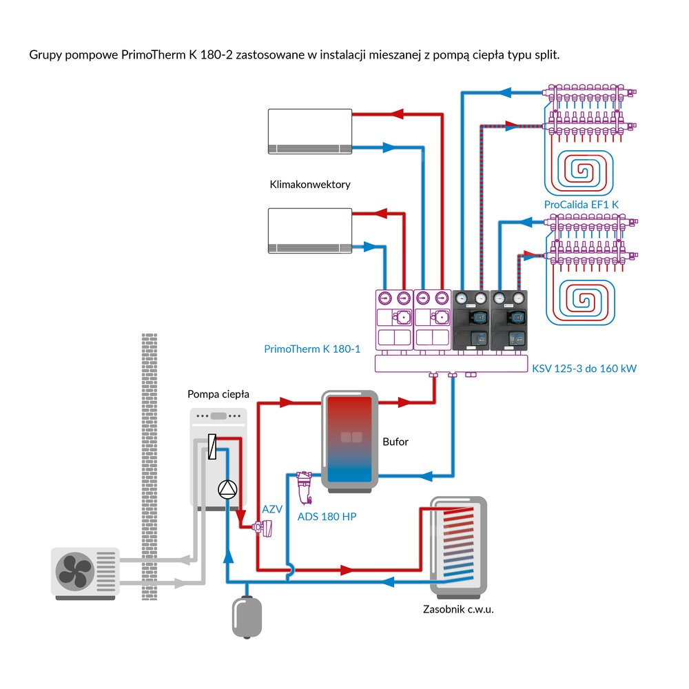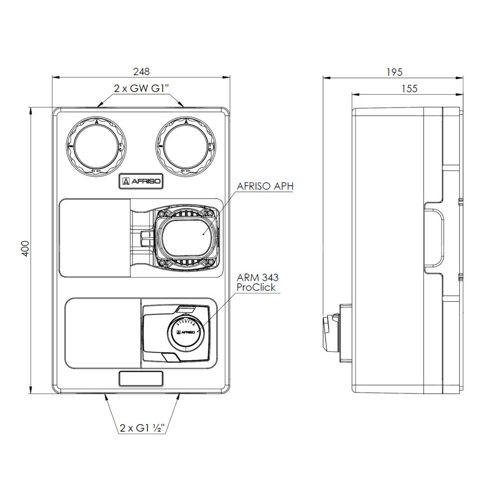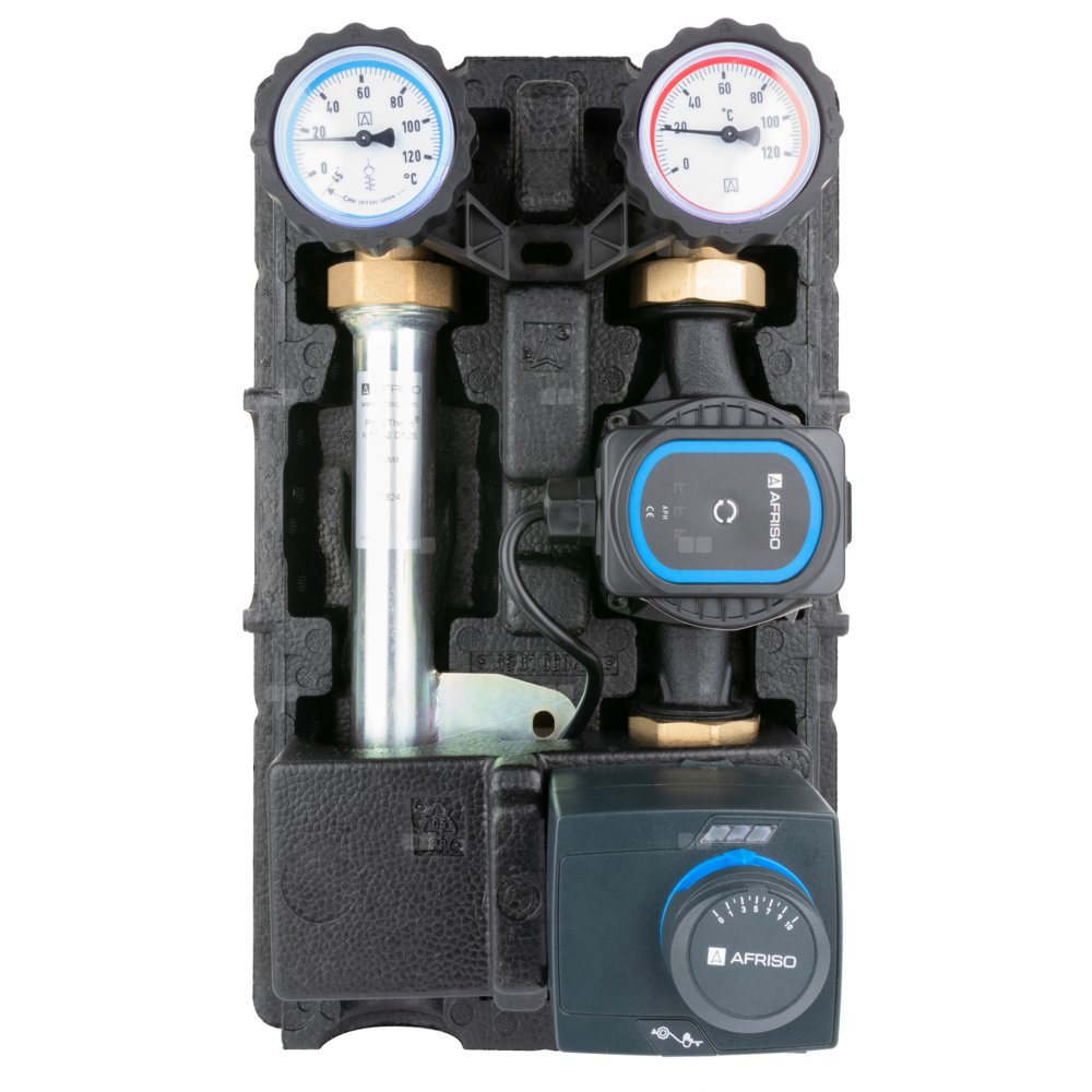 Grupa pompowa AFRISO PrimoTherm K 180-2 DN 25 AP 3-WM-SM GZ x GW 1 1/2'' x 1'', z zaworem mieszającym, z izolacją, z pompą obiegową, z siłownikiem arm 343 proclick