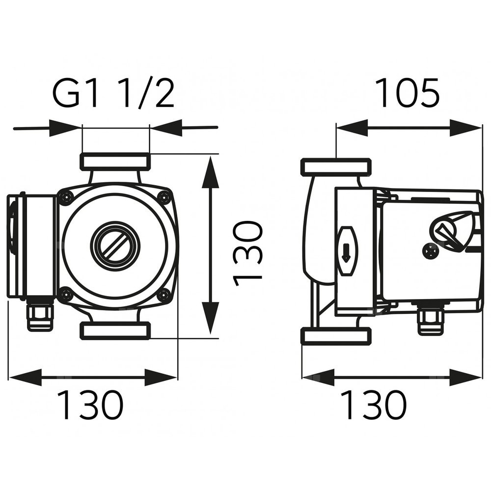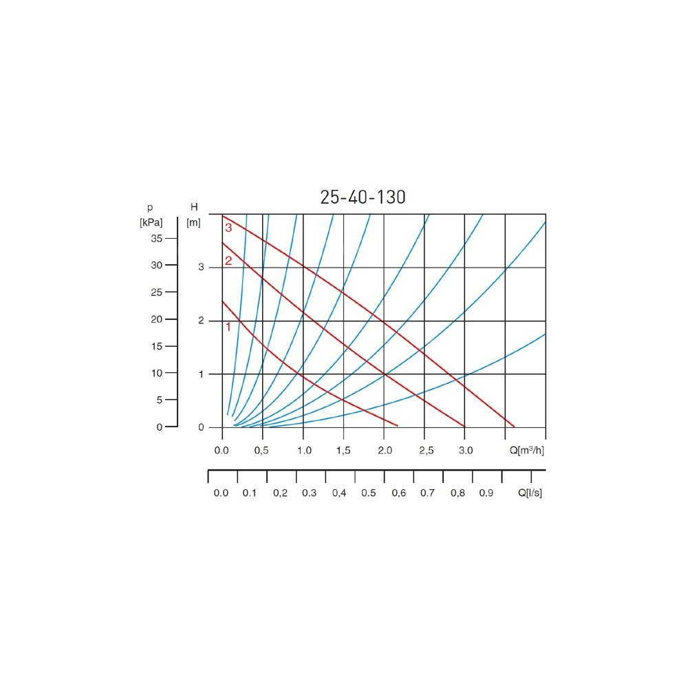 Model 25-40 130 Zakres funkcjonowania 0,2 - 3,5 m³/h Wysokość podnoszenia max. 3,8 m Temperatura cieczy min. +2°C, max. +110°C Rodzaj pompowanej cieczy ta pompa cyrkulacyjna jest przeznaczona wyłącznie dla wody pitnej Maksymalne ciśnienie 10 bar Klasa ochrony IP 44 Klasa izolacji H Dławik kabla PG 11 Instalacja z osią wału w pozycji poziomej i ze skrzynką zaciskową umieszczoną dowolnie, lecz nie pod pompą Napięcie 50-60 Hz, ~230V Pobór mocy (I,II,III) 35/45/65 W Rozstaw przyłączy 130 mm Przyłącze G1 1/2 Temperatura otoczenia min. +2°C, max. +40°C
