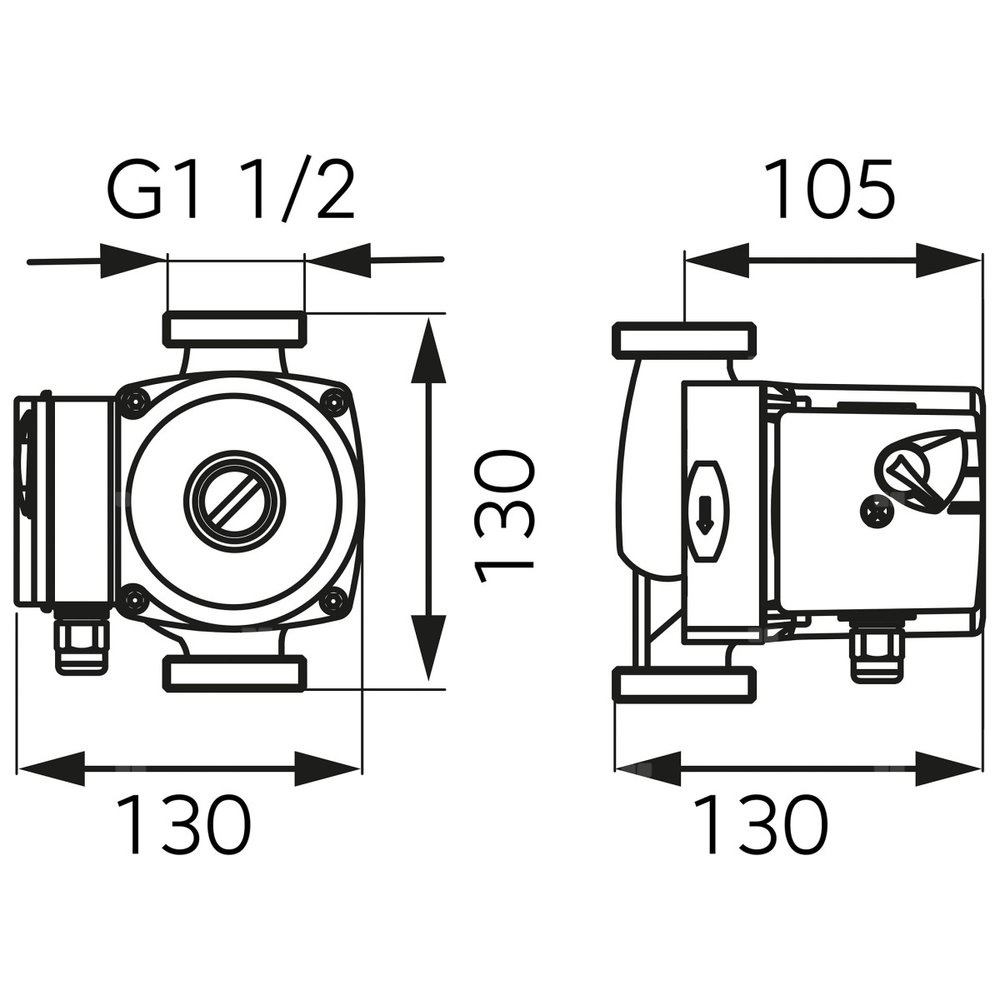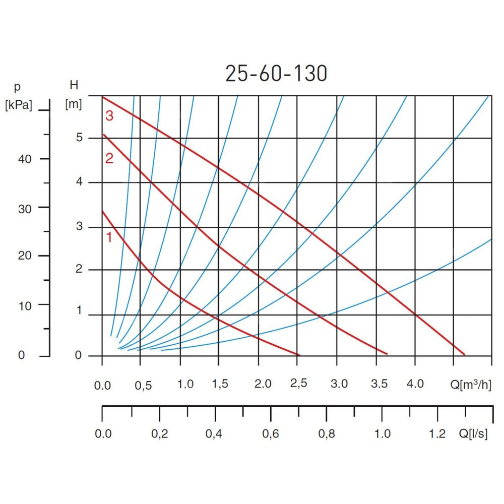 Model 25-60 130 Zakres funkcjonowania 0,2 - 4,5 m³/h Wysokość podnoszenia max. 5,5 m Temperatura cieczy min. +2°C, max. +110°C Zastosowanie ta pompa cyrkulacyjna jest przeznaczona wyłącznie dla wody pitnej Maksymalne ciśnienie 10 bar Klasa ochrony IP 44 Klasa izolacji H Dławik kabla PG 11 Instalacja z osią wału w pozycji poziomej i ze skrzynką zaciskową umieszczoną dowolnie, lecz nie pod pompą Napięcie 50-60 Hz, ~230V Pobór mocy (I,II,III) 55/70/100 W Rozstaw przyłączy 130 mm Przyłącze G1 1/2 Temperatura otoczenia min. +2°C, max. +40°C