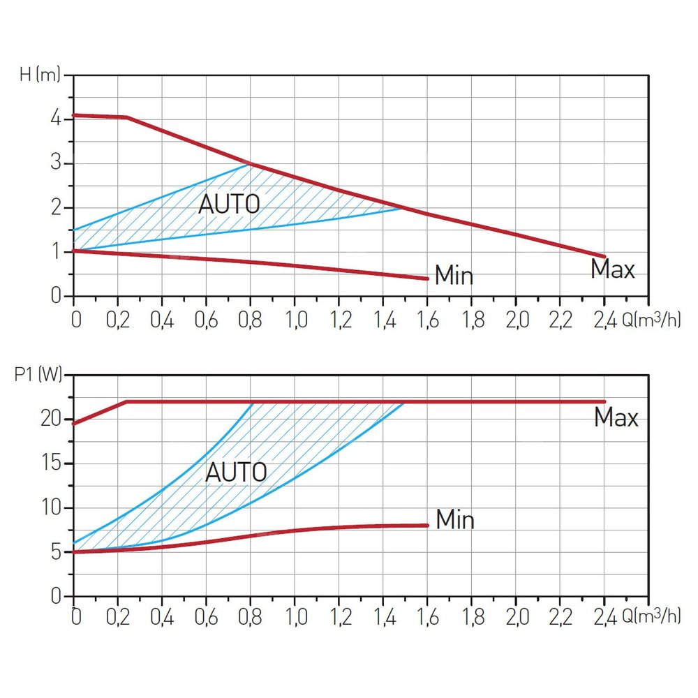 Model GPA II 25-4 130 Zakres funkcjonowania maks. 2,4m³/h Wysokość podnoszenia maks. 4,1m Temperatura cieczy min. +2°C, maks. +110°C Rodzaj pompowanej cieczy Czysta, nie zawierająca ciał stałych, włókien ani substancji oleistych mineralnych, nielepka, neutralna chemicznie, niekorozyjna i niewybuchowa, o parametrach zbliżonych do wody. Tłoczenie płynu o lepkości znacznie wyższej niż woda spowoduje znaczące pogorszenie parametrów pracy, pompa może nie działać prawidłowo. Pompę można użytkować z glikolem w stężeniu do 30%, w takich przypadkach pompa będzie pracowała ze zredukowaną wydajnością. Minimalne ciśnienie na wlocie w zależności od temperatury cieczy 0,50bar do 85°C 0,28bar do 90°C 1,00bar do 110°C Maksymalne ciśnienie 1,0MPa Klasa ochrony IP 42 Klasa izolacji H Współczynnik efektywności energetycznej EEI ≤0,23 Instalacja z wałem w pozycji poziomej, dławik kabla skierowany w dół lub w bok Napięcie ~230V (-6% – +10%), 50/60Hz Pobór mocy 5 – 22W; 0,05 – 0,19A Rozstaw przyłączy 130 mm Przyłącze G1 1/2 Parametry otoczenia 0°C – 40°C; RH <95%
