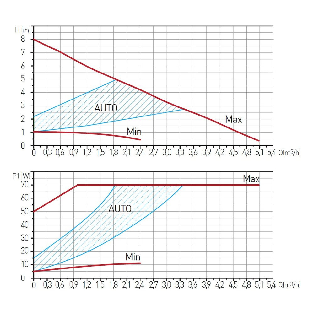 Model GPA II 32-8-180 Zakres funkcjonowania maks. 5,0 m³/h Wysokość podnoszenia maks. 8,0 m Temperatura cieczy min. +2°C, maks. +110°C Rodzaj pompowanej cieczy Czysta, nie zawierająca ciał stałych, włókien ani substancji oleistych mineralnych, nielepka, neutralna chemicznie, niekorozyjna i niewybuchowa, o parametrach zbliżonych do wody. Tłoczenie płynu o lepkości znacznie wyższej niż woda spowoduje znaczące pogorszenie parametrów pracy, pompa może nie działać prawidłowo. Pompę można użytkować z glikolem w stężeniu do 30%, w takich przypadkach pompa będzie pracowała ze zredukowaną wydajnością. Minimalne ciśnienie na wlocie w zależności od temperatury cieczy 0,50bar do 85°C 0,28bar do 90°C 1,00bar do 110°C Maksymalne ciśnienie 1,0MPa Klasa ochrony IP 42 Klasa izolacji H Współczynnik efektywności energetycznej EEI* ≤0,23 Instalacja z wałem w pozycji poziomej, dławik kabla skierowany w dół lub w bok Napięcie ~230V (-6% – +10%), 50/60Hz Pobór mocy 5 – 70W; 0,05 – 0,52A Rozstaw przyłączy 180 mm Przyłącze G2 Parametry otoczenia 0°C – 40°C; RH <95%