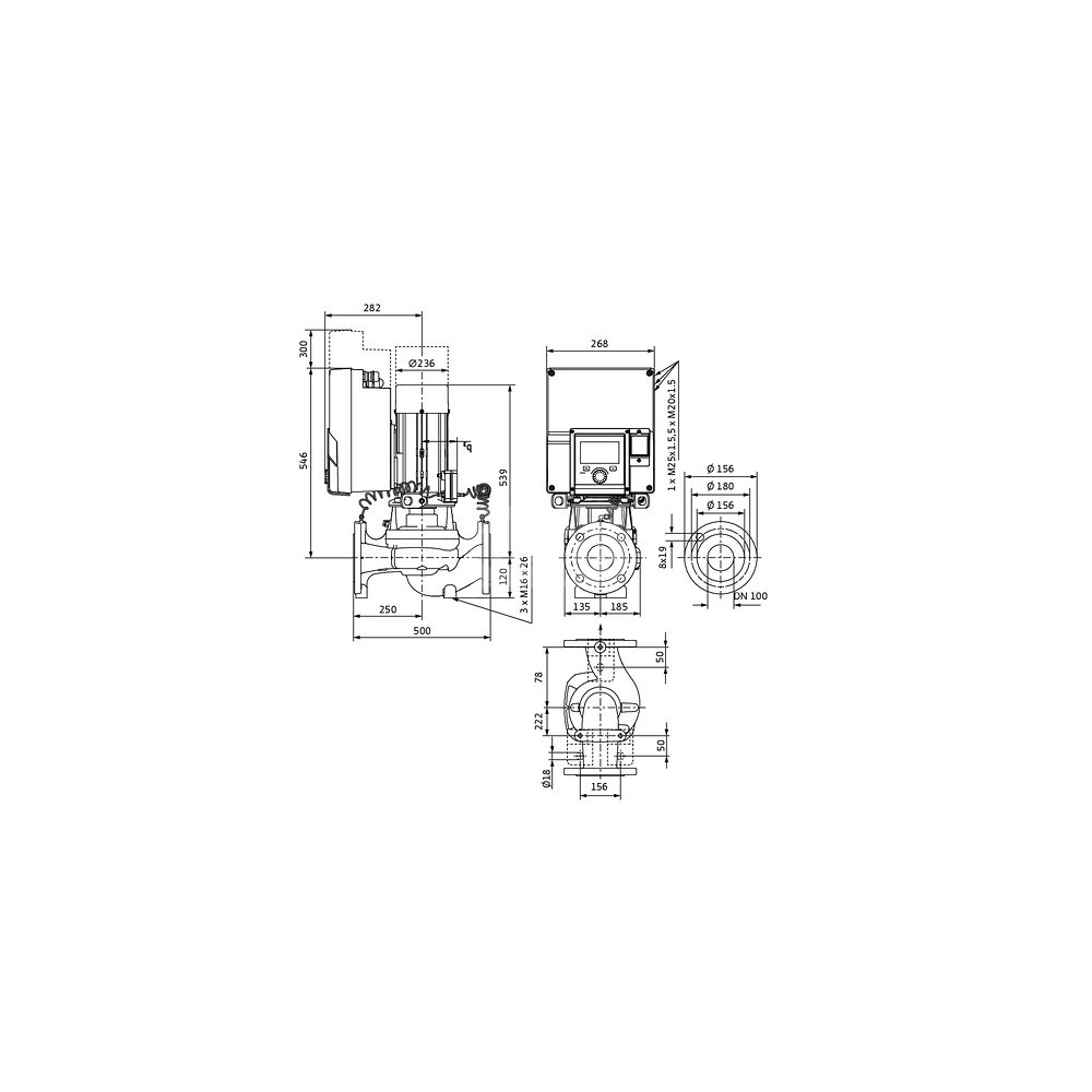 Pompa obiegowa WILO Stratos GIGA 2.0-I 100/1-11/4,0-R1 typu in-line z silnikiem znormalizowanym 50/60 Hz, moc silnika 3.7kW 6.1 A 1500 obr/min, wlot Kołnierz DN 100