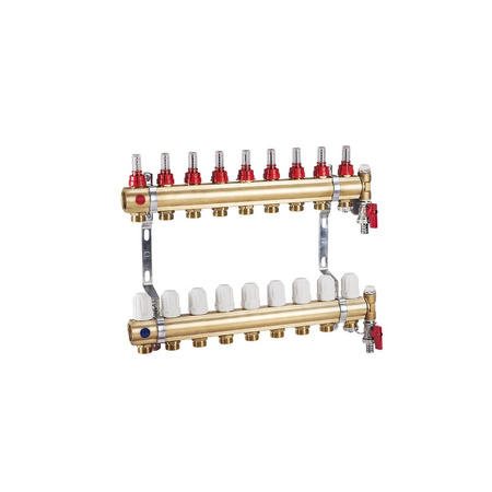 PHA-107/1 Rozdzielacz mosiężny 9 obw. z rotametrem kpl., PN6, Tmax +70  st.C