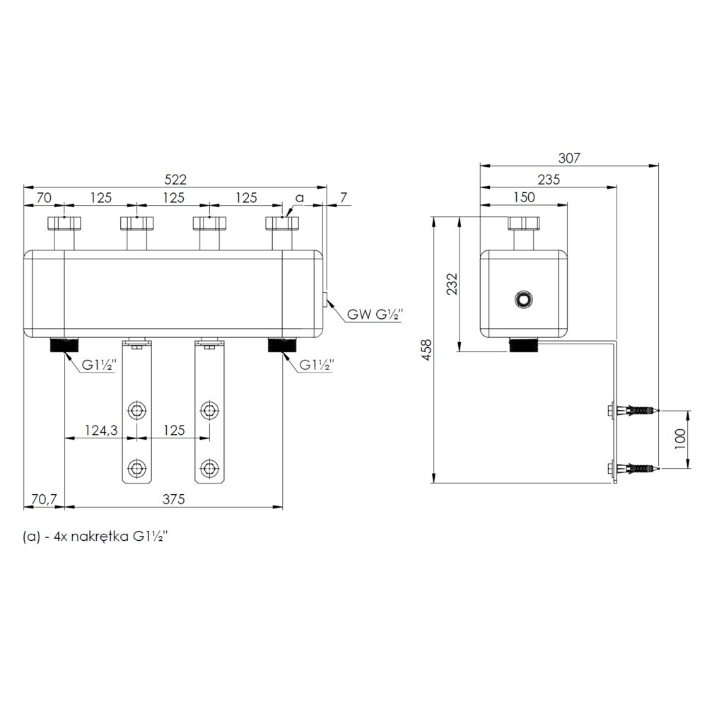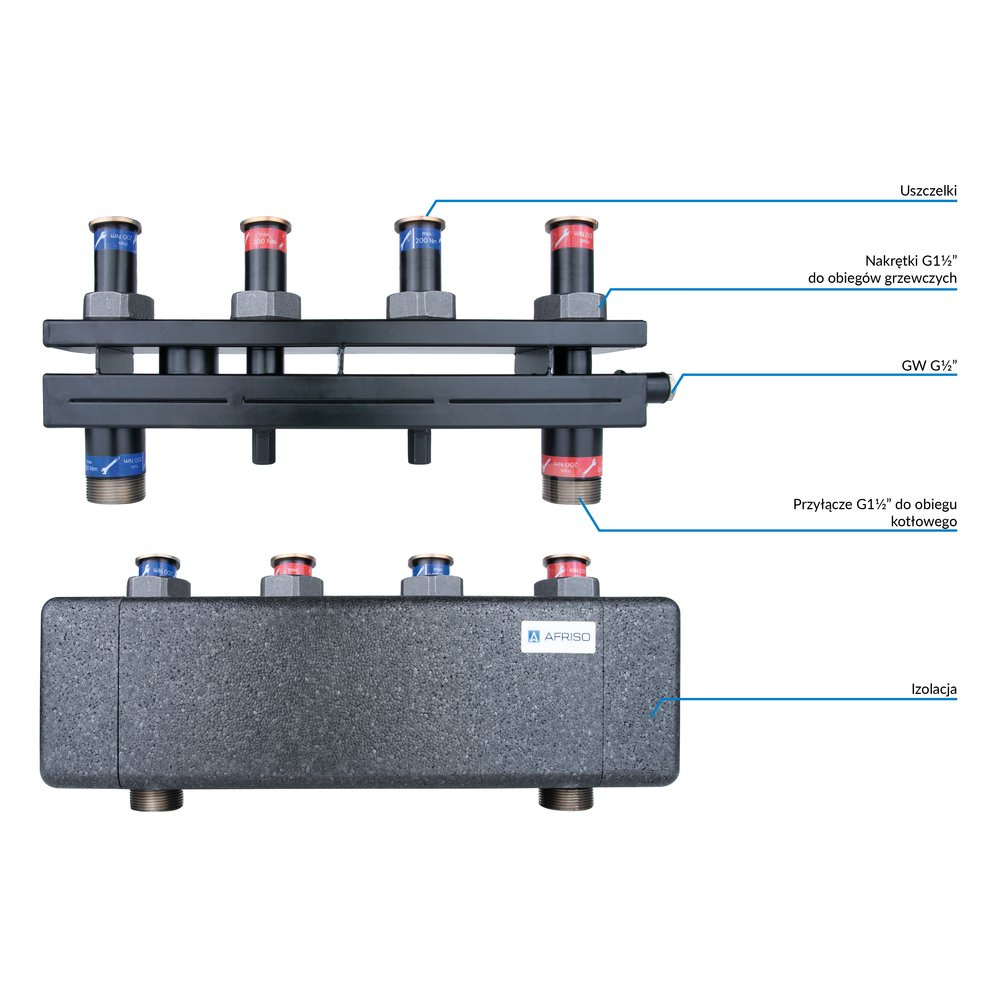 Rozdzielacz do instalacji c.o. AFRISO KSV 125-2 HW GZ 1 1/2'', 2-obieg. Nakrętka 1 1/2'', max. 70 kW