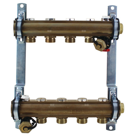 Rozdzielacz do ogrzewania podłogowego HERZ 4-obieg. mosiądz GW 1'' x GZ 3/4'' + zawór napełn/spust + odpowietrznik