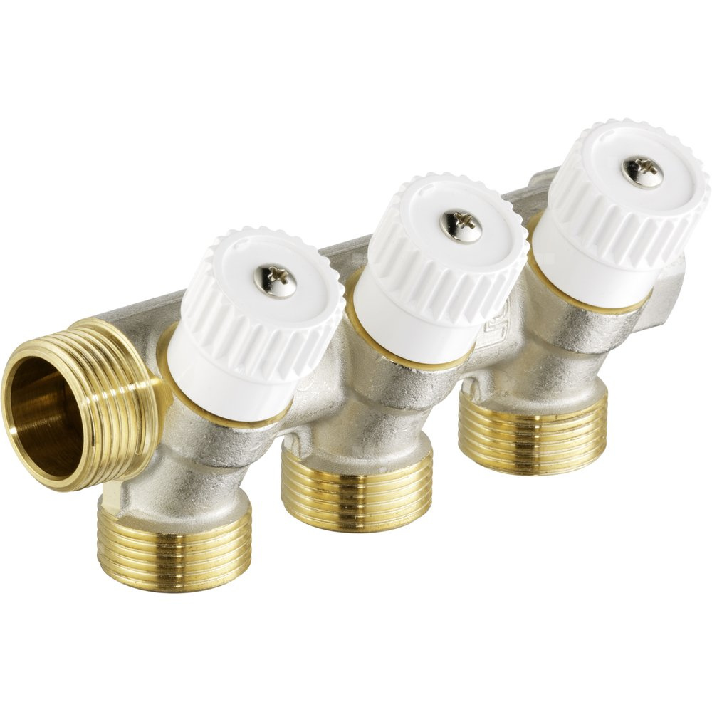 Rozdzielacz hydrauliczny VIEGA 6734 mosiądz GZ x GW, odgałęzień: 3 Gwint zewnętrzny (3/4'') + zawory odcinające