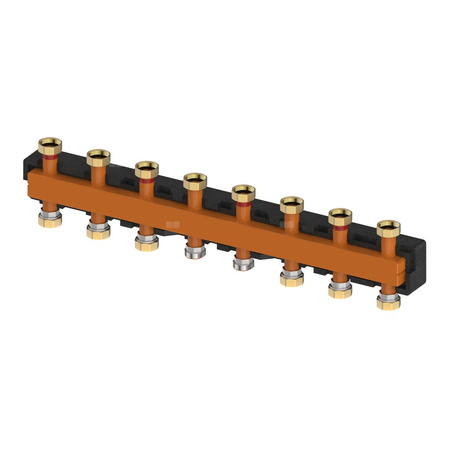 Z izolacją EPP, każdy z 2, 3 lub 4 parami przyłączy skierowanymi do góry lub do dołu (można również zastosować przyłącza dolne), do montażu grup pompowych (pasuje do grup pompowych z rozstawem osi 125 mm), ze wszystkimi niezbędnymi śrubunkami do wykonania montażu.