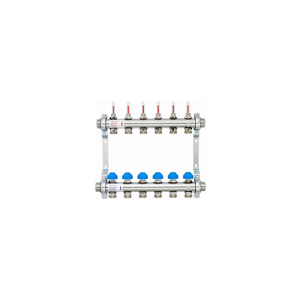 Okrągły kolektor rur ze stali nierdzewnej. Płaska nić męska po obu stronach. Niska głębokość instalacji. Podłączenie sutka g ¾ "z Eurocone. Testowany ciśnienie. Korzystek można dostosować do indywidualnych wymagań na miejscu za pomocą akcesoriów modułowych. Połączenie obwodu grzewczego ¾" m z eurocone. Dostarcz gałąź na górze. Gotowy do montażu z nawiasami. EN1264 ZASTOSOWANIE. Dostawa (góra): Flowmeter 0 - 4 l/min z niskim spadkiem ciśnienia i funkcją odcinania. Powrót (dolny): Zawór sterujący i odcinający z adaptacją M30 x 1,5 (punkt zamknięcia: 11,8 mm).