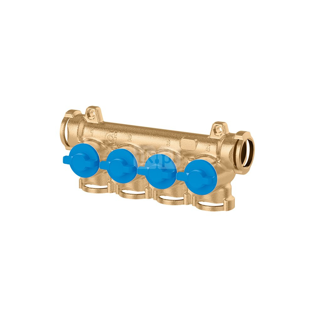 Rozdzielacz z indywidualnymi zaworami odcinającymi (niebieskie pokrętła) przyłącza wylot: 5 wyjść, podłączenie zaciskowe.