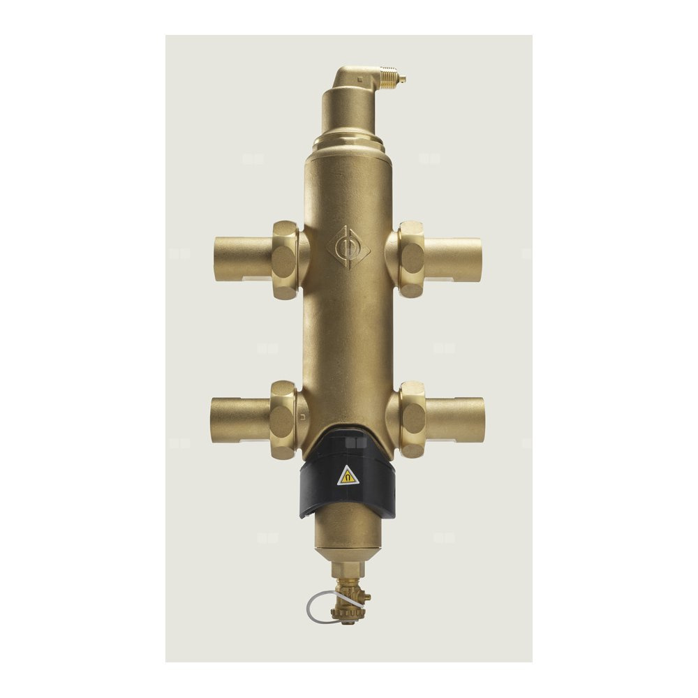 Separator powietrza i zanieczyszczeń z funkcją sprzęgła hydraulicznego SPIROCROSS. Jest to urządzenie bezobsługowe, pracujące bez siatek i filtrów, zapewniające ciągłą separację powietrza (gazów) i zanieczyszczeń stałych do najdrobniejszych cząstek, utrzymując instalację w stanie uzdatnienia oraz pozwalające zrównoważyć hydraulicznie instalację.Wykonanie mosiężne z zewnętrznym magnesem, wielkości 1", 1 1/4", 1 1/2", połączenia - gwinty wewnętrzne.
