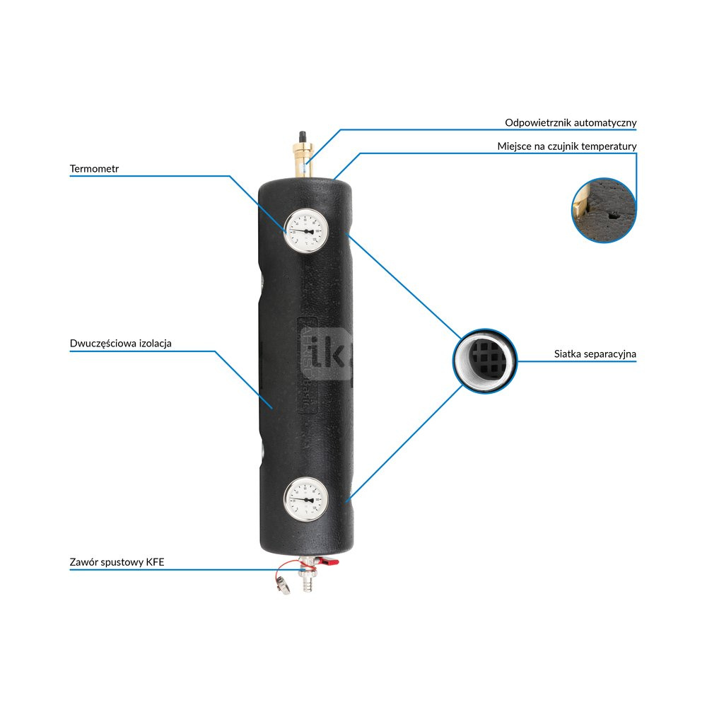 Rozdziela hydraulicznie obieg źródła od obiegów po stronie instalacji.
