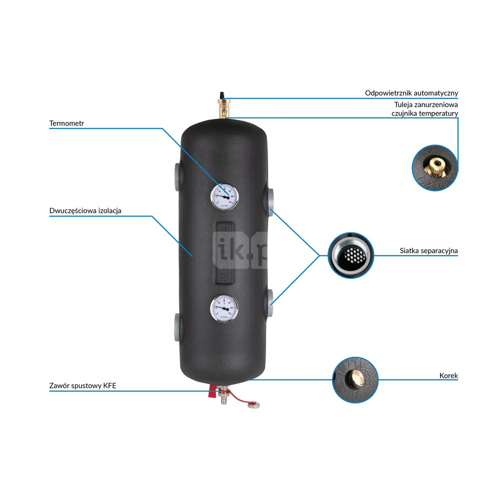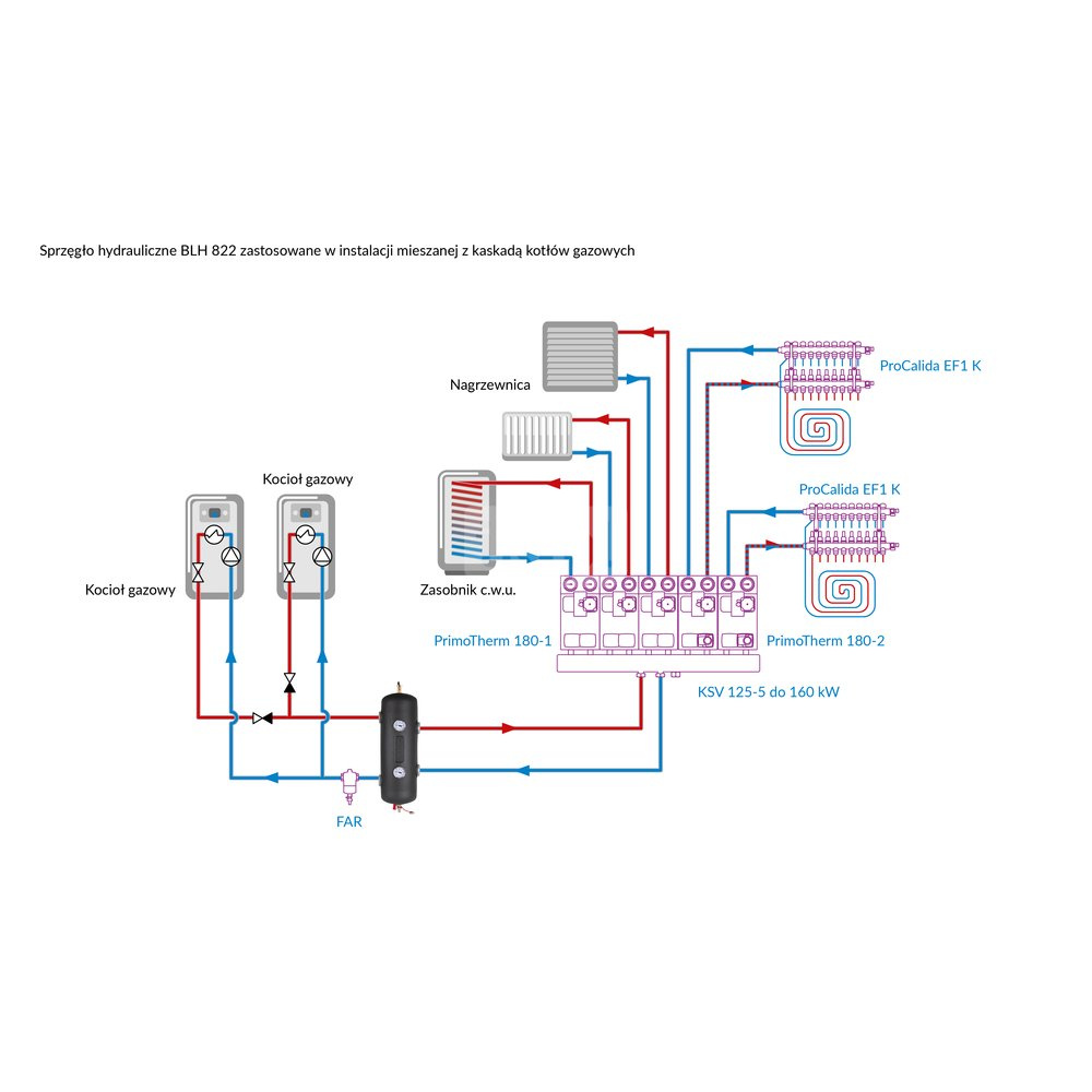 Sprzęgło hydrauliczne ocieplone BLH 822, 200 kW, 4x GW G2'', 6x GW G1/2'' odpowietrznik automatyczny, zawór spustowy, termometry, tuleja zanurzeniowa, korek