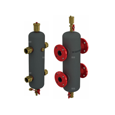 Hydrauliczny separator niezależnego rozdziału obwodu kotłowni (produkcji) i obwodu wtórnego - instalacji (użytkownik). Stalowy malowany, z zakończeniem na gwinty lub połączenia kołnierzowe.
