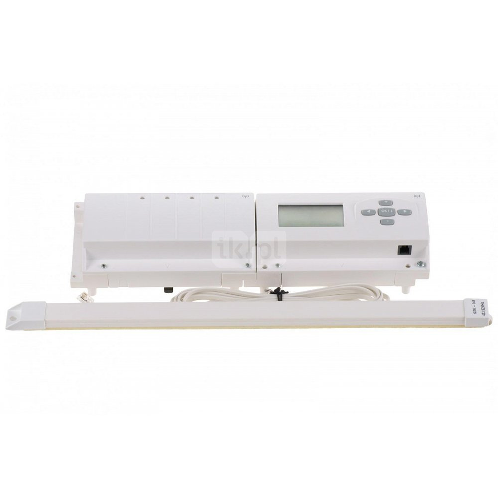 Komplet do regulacji 6 stref ze sterowaniem radiowym. Komplet zawiera: listwa zaciskowa, zegar sterujący, antena connecting_box_WFHC-RF