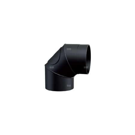 Kolano CS ŁKR to element z rewizją z systemu MK Nero. System MK Nero stosowany jest najczęściej jako przyłącze do kotłów i kominków na paliwa stałe. Elementy systemu wykonane są ze stali czarnej o grubości 2,0 mm, malowanej farbą Senotherm. To co wyróżnia element to wyjątkowo estetyczne połączenie segmentów kolana skrętnego, które pozwala na zmianę kierunku prowadzenia przyłącza, a rewizja pozwala na czyszczenie i kontrolę instalacji.