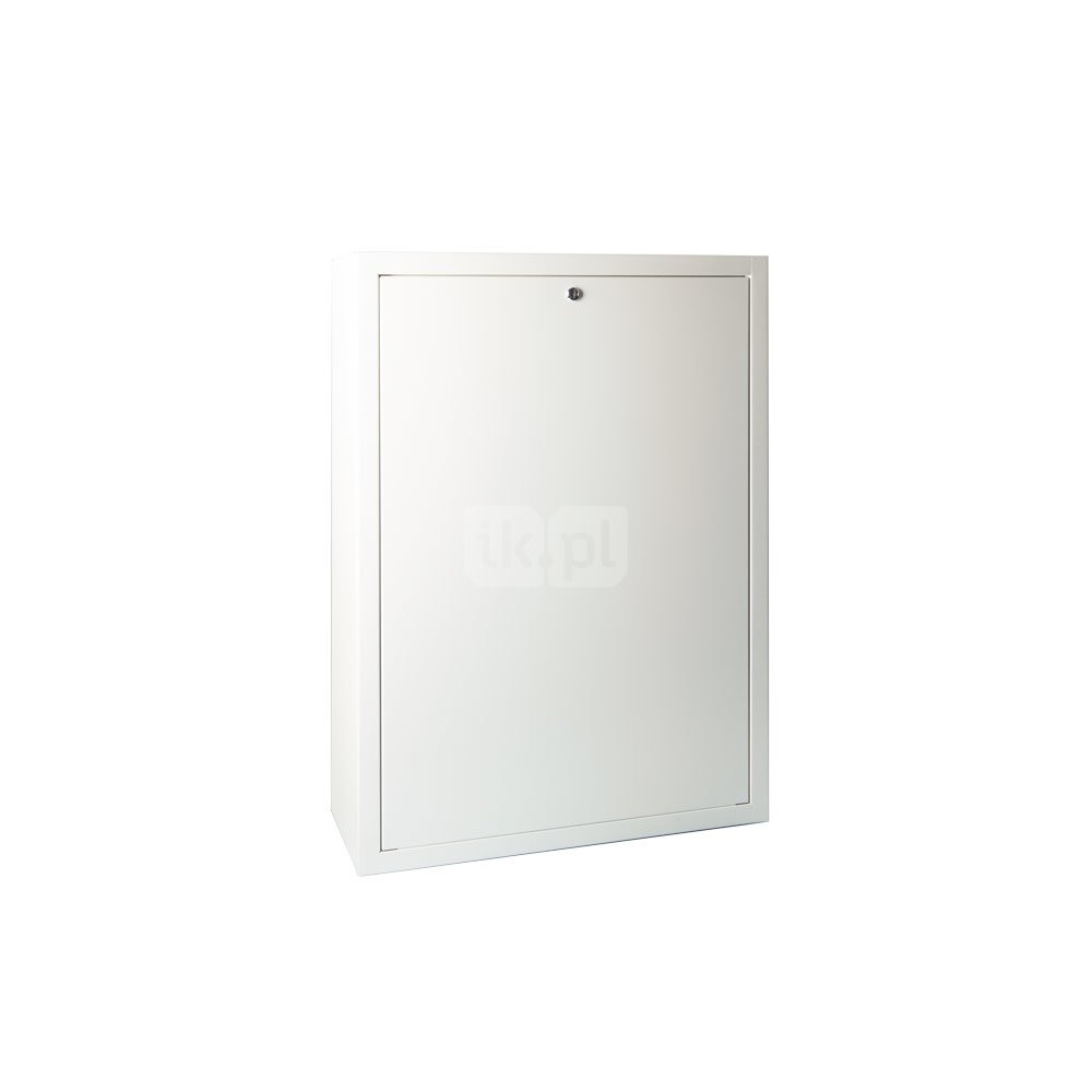 Kompaktowa szafka zawierająca solidny wspornik do montażu mieszkaniowego węzła cieplnego oraz konsolę z kulowymi zaworami odcinającymi, zamek. Umożliwia szybki demontaż stacji w celu wymiany lub serwisu. Szafa jest zaizolowana termicznie zgodnie z GEG (niemieckie rozporządzenie w sprawie oszczędności energii). Obudowa i drzwi przednie pomalowane na biało.