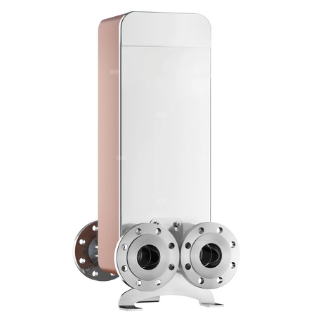 lutowany dwubiegowy płytowy wymiennik ciepła ze stali nierdzewnej (1.4404), lutowany próżniowo miedzią. Wielkości R..B-14 do R..B-110 z przyłączem gwintowanym, R..B-235 z przyłączem kołnierzowym DIN.