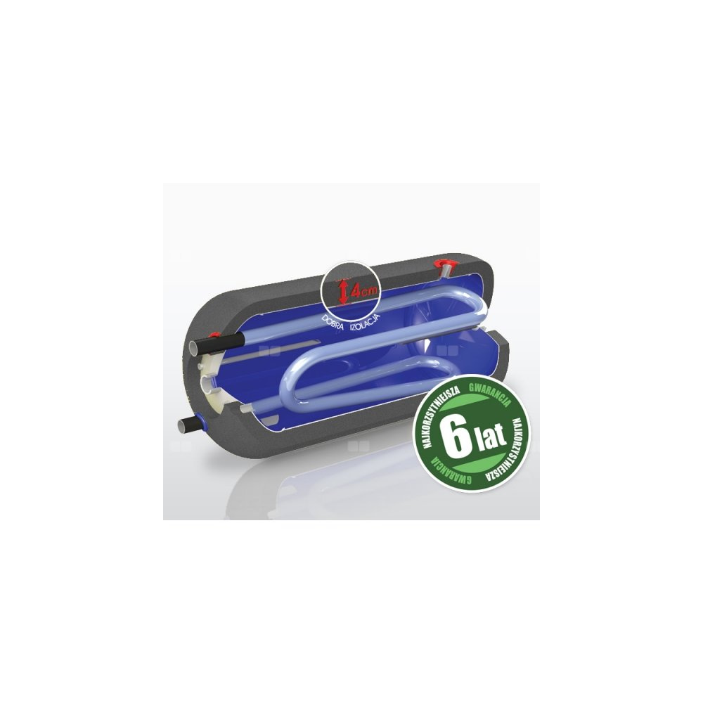 Wymiennik c.w.u. poziomy typu WGJ-g - izolacja termiczna: pianka polistyrenowa WGJ-g max z podwójną wężownicą 120l