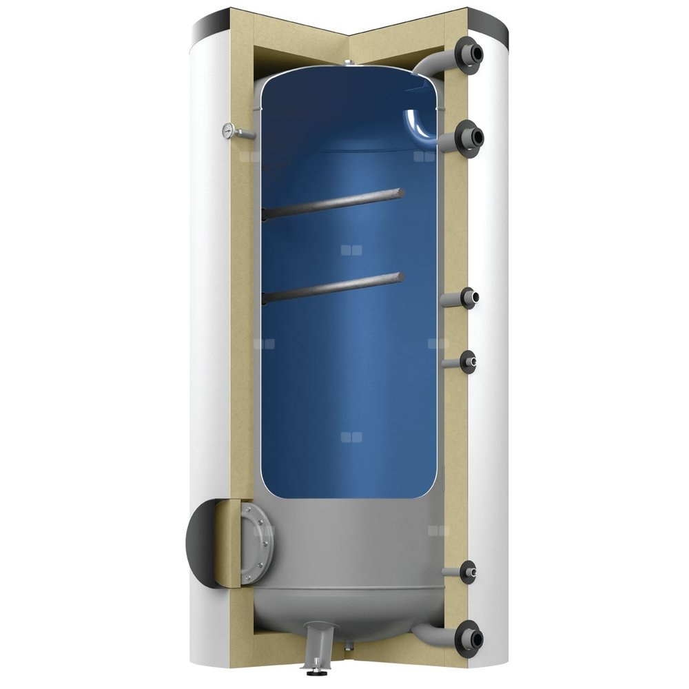 Zasobnik ze stali S235JR+AR, zgodny z normą PN-EN 12897 i Dyrektywą o urządzeniach ciśnieniowych 2014/68/UE. Powłoka emaliowana spełniająca wymogi higieniczne dla wody przeznaczonej do spożycia zgodna z normą DIN 4753 T3.Podgrzewacz wody użytkowej do 500 litrów z niezdejmowaną, wydajną izolacją, klasa palności B2 wg DIN 4102-1, podgrzewacz wody użytkowej > od 500 do 1000 litrów z izolacją 100 mm, podgrzewacz wody użytkowej > powyżej 1000 litrów ze zdejmowaną izolacją z włókien poliestrowych 120 mm, klasa palności B2 wg DIN 4102-1.Zasobniki i podgrzewacze o pojemności do 2000 litrów są zaizolowane fabrycznie. Zasobniki o pojemności od 3000 litrów są dostarczane bez izolacji, w pozycji leżącej. Izolację należy zamówić osobno.Zasobniki i podgrzewacze dostępne w klasie efektywności energetycznej C.Straty ciepła zostały zmierzone na stanowiskach kontrolnych certyfikowanych zewnętrznie.Długość towaru w centymetrach