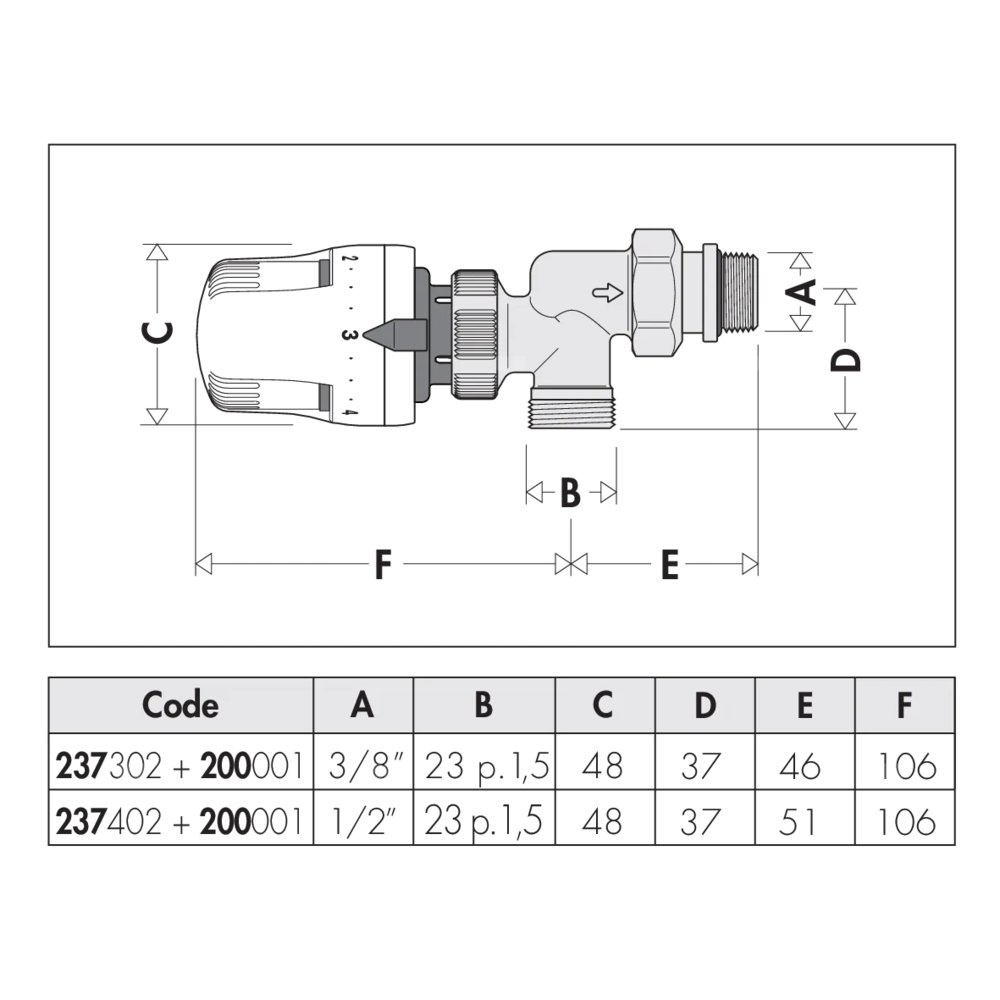 Aksjalny dynamiczny grzejnikowy zawór termostatyczny przystosowany do montażu głowic termostatycznych elektronicznych i siłowników termoelektrycznych podłącznie rury: 23 p. 1,5, wlot, Podłączenie do złączek Caleffi. podłączenie grzejnika: G 1/2" A (ISO 228-1) GZ, wylot. Maksymalne ciśnienie pracy: 10 bar. Zakres temperatury medium: 5–95 °C. Wykończenie: chromowane. Zakres regulacji natężenia przepływu: 20–120 l/h. Materiał: mosiądz.