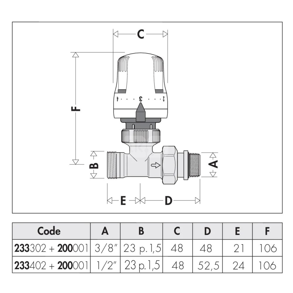 Prosty dynamiczny grzejnikowy zawór termostatyczny przystosowany do montażu głowic termostatycznych elektronicznych i siłowników termoelektrycznych. podłącznie rury: 23 p. 1,5, wlot, podłączenie proste, Podłączenie do złączek Caleffi. podłączenie grzejnika: G 1/2" A (ISO 228-1) GZ, wylot, podłączenie proste. Maksymalne ciśnienie pracy: 10 bar. Zakres temperatury medium: 5–95 °C. Wykończenie: chromowane. Zakres regulacji natężenia przepływu: 20–120 l/h. Materiał: mosiądz.