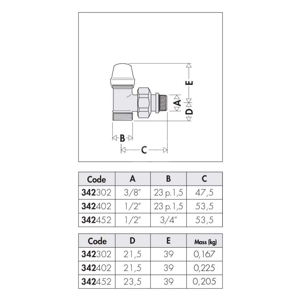 Kątowy grzejnikowy zawór odcinający.