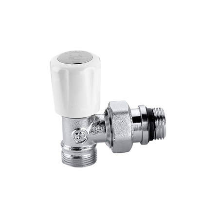 Kątowy grzejnikowy zawór termostatyczny z pokrętłem, przystosowany do montażu głowic termostatycznych, elektronicznych i siłowników termoelektrycznych podłącznie rury: 23 p. 1,5, wlot, podłączenie kątowe, Podłączenie do złączek Caleffi. podłączenie grzejnika: G 3/8" A (ISO 228-1) GZ, wylot, podłączenie kątowe. Maksymalne ciśnienie pracy: 10 bar. Zakres temperatury medium: 5–100 °C. Wykończenie: chromowane. Kv: 2,22 m³/h. Materiał: mosiądz.