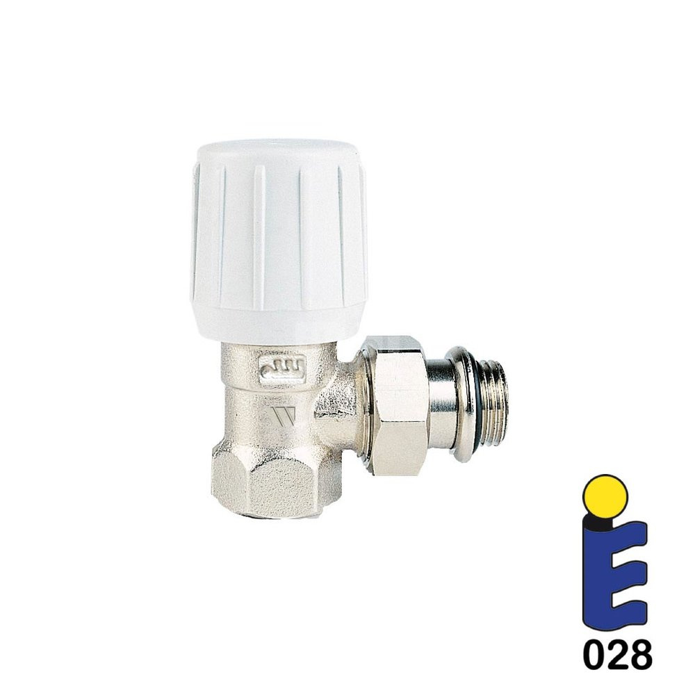 Niklowany zawór kątowy, ręczny, możliwość montażu głowicy termostatycznej VALVOLA PER FERRO SQ.3/8 UNI TE.ZAB