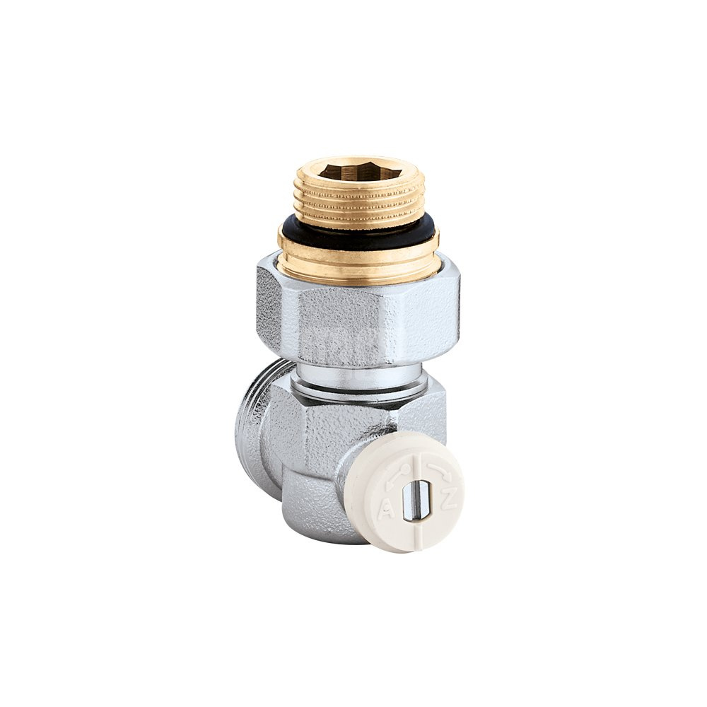 Pojedynczy, kątowy zawór podłączeniowy do grzejników płytowych podłącznie rury: G 1/2" A (ISO 228-1) GZ, wlot, Podłączenie do złączek Caleffi. podłączenie grzejnika: G 3/4" A (ISO 228-1) GZ, wylot. Maksymalne ciśnienie pracy: 10 bar. Zakres temperatury medium: 5–100 °C.