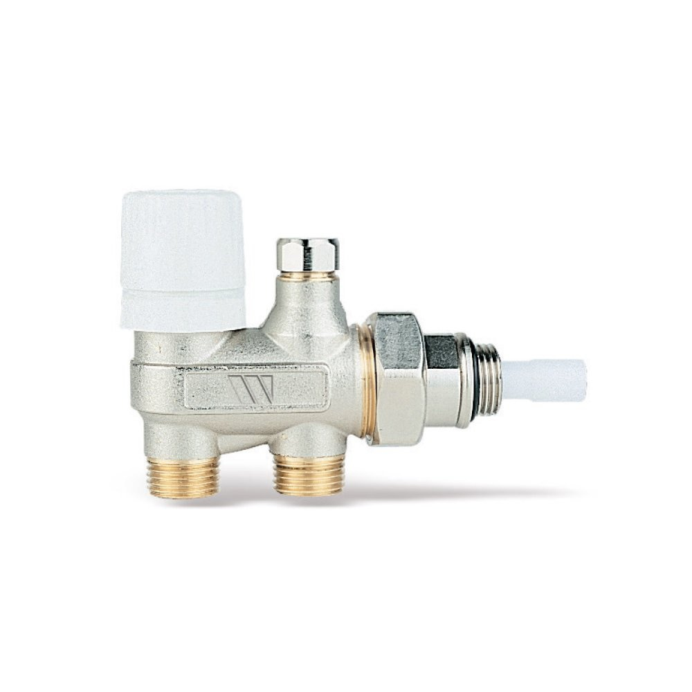 Zawór 4-drogowy, niklowany, z możliwością regulacji termostatycznej, łączący funkcję „zasilania” i „powrotu”. Przeznaczony do instalacji dwururowych. Z możliwością wykonania nastawy wstępnej i z wbudowanym zaworem odcinającym. Gwint zewnętrzny – do złączki zaciskwej rury z tworzywa sztucznego lub miedzianej. Półśrubunek z uszczelką oring na przyłączu gwintowanym do grzejnika, w komplecie z króćcem do podziału przepływów. Pokrętło do regulacji wykonane z tworzywa sztucznego. Strata ciśnienia (z uwzględnieniem głowicy termostatycznej): 1,5 bar. Współczynnik Kvn przy zakresie proporcjonalności 2K: dla DN 15 – 0,58, dla DN 20 – 0,62.
