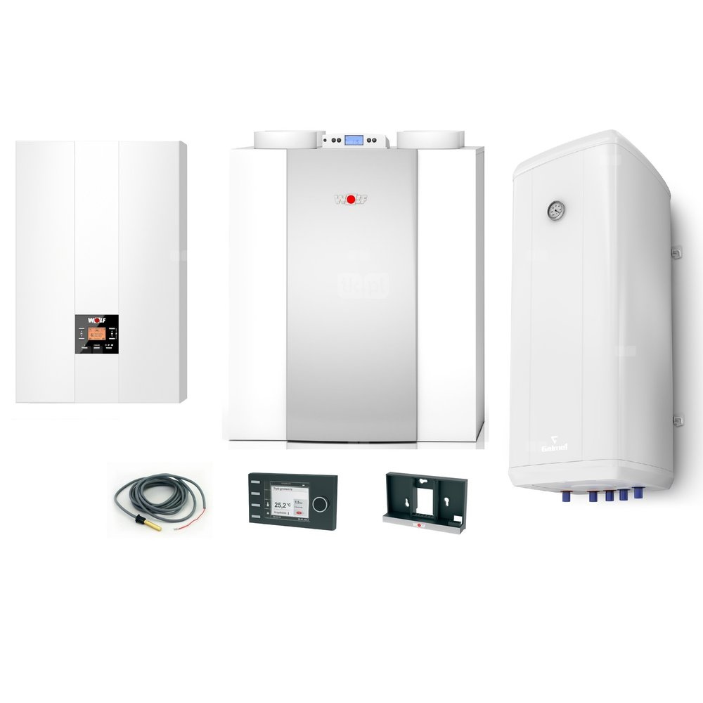 Pakiet - Kocioł gazowy jednofunkcyjny WOLF FGB-24 kondensacyjny wiszący 5.3-20.7 kW + Czujnik c.w.u. + Regulator BM-2 + Rekuperator CWL 400P + Zasobnik c.w.u Vulcan 120L wiszący
