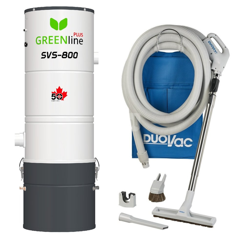 Odkurzacz centralny GREENline PLUS SVS800 został stworzony dla tych którzy cenią sobie komfort oraz skuteczność działania. Odkurzacz wyposażono w niezawodny i wydajny silniki Ametek o mocy 700 Air Watt i podciśnienie sięgające do 36,3kPA. Bardzo wygodny w użytkowaniu system filtracji złożony z filtra głównego tzw. samoczyszczącego się oraz wymiennych worków jednorazowych o pojemności 12l przekona najbardziej wymagających klientów. Jeśli nie korzystamy z worka jednorazowego wszystkie śmieci trafiają do zbiornika i raz na kilka miesięcy należy opróżnić zbiornik i wyczyścić główny filtr. Cały odkurzacz wykonany jest z metalu, dlatego nie ma problemu z elektryzowaniem się i nagrzewaniem obudowy podczas długiej pracy urządzenia. Ergonomiczne uchwyty gwarantują użytkownikowi łatwe odpięcie i zapięcie zbiornika.