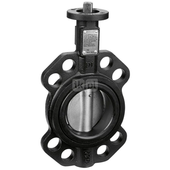 Przepustnica typu WAFER Do współpracy z przeciwkołnierzami płaskimi PN 6/10/16 - EN 1092-1. Przyłącze: DN 65 (EN 1092-1) PN 16. Maksymalne ciśnienie pracy: 16 bar. Zakres temperatury medium: -20–120 °C. Kv: 170 m³/h. Materiał: żeliwo.