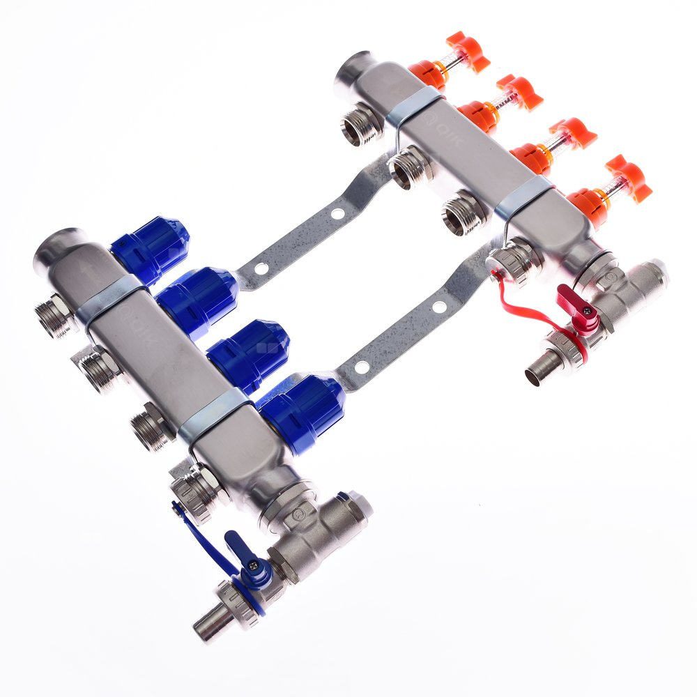 Rozdzielacz do ogrzewania podłogowego QIK Optimo BASIC III - RNZT-2-50 13-obieg. inox gw 1'' x gz 3/4'' + przepływomierz
