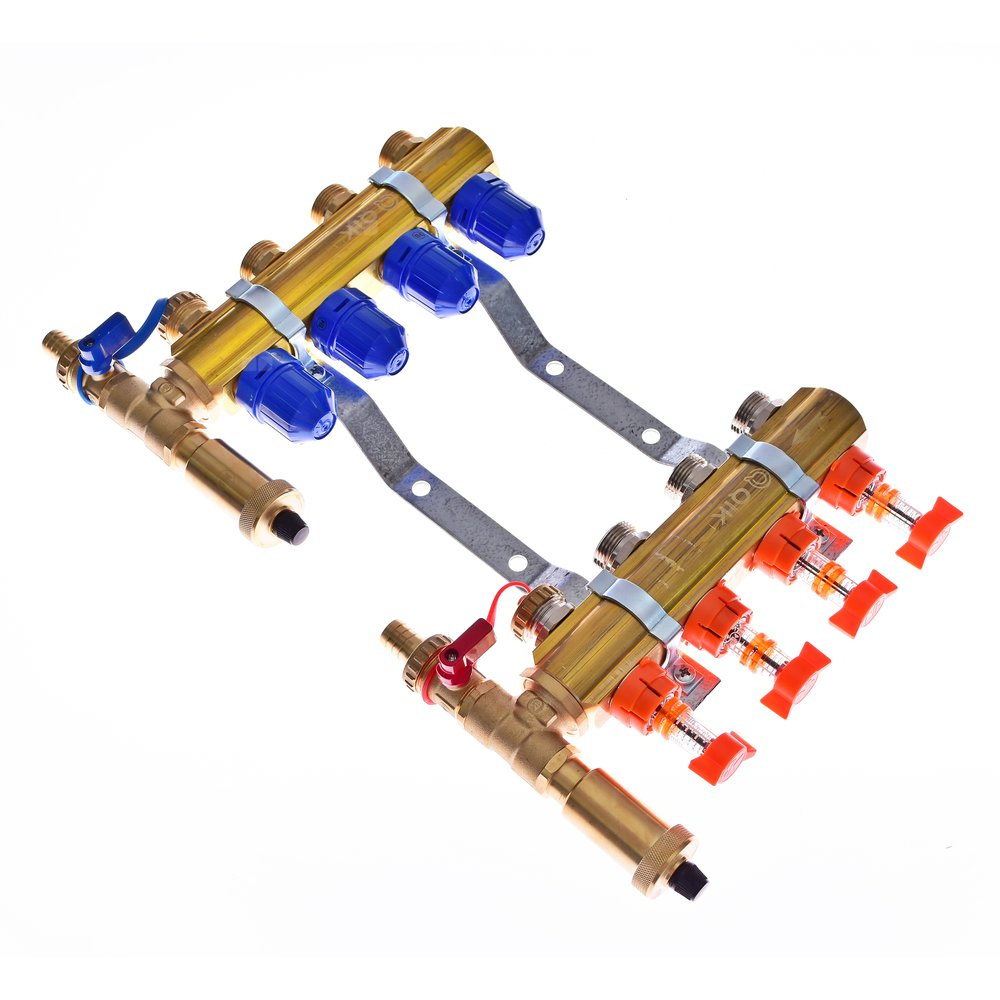 Rozdzielacz do ogrzewania podłogowego QIK Optimo STANDARD III - RMSZT-1-50 10-obieg. mosiądz gw 1'' x gz 3/4'' + przepływomierz
