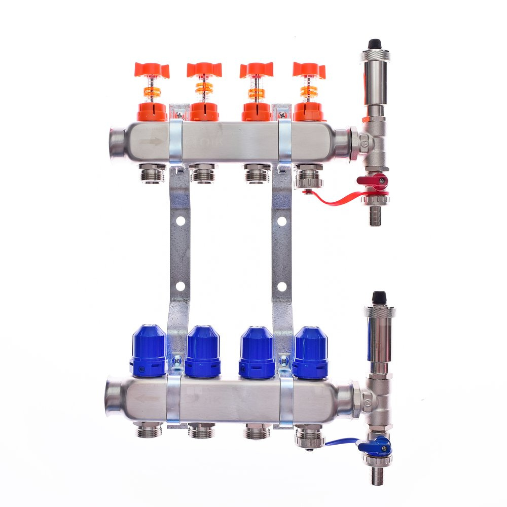 Rozdzielacze ogrzewania podłogowego, przeznaczone do rozdzielenia medium grzewczego na poszczególne pętle. Belki INOX profilowe, w skład kompletu wchodzi: