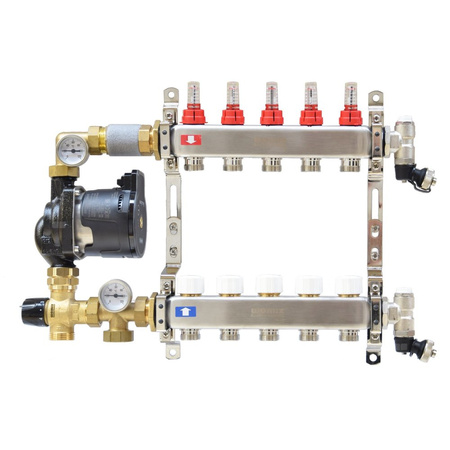 Rozdzielacz ze stali nierdzewnej do ogrzewania podłogowego CS-Rot02 8F, z grupą mieszająco-pompową, z pompą DAB Evosta2 65/130