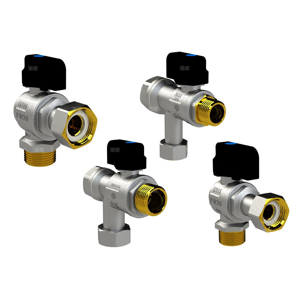 SENA Zestaw zaworów kulowych kątowych do kotłów GZ/GW/RN z filtrem i zaworem zwrotnym (150813 + 150814 + 150833 + 150834)