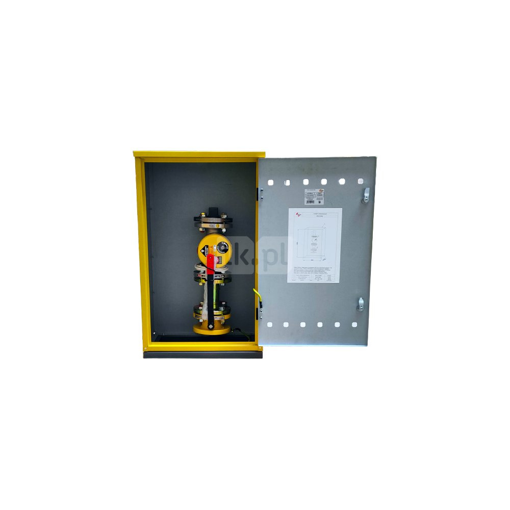 W skład takiego punktu wchodzą zawory kulowe kołnierzowe oraz zawór elekromagnetyczny, który pewnie i skutecznie odcina dopływ gazu do instalacji, w chwili wykrycia gazu w pomieszczeniu, przez detektory. Zawór odcinający dopływ gazu do budynku, będący elementem składowym urządzenia sygnalizacyjno-odcinającego, powinien być instalowany poza budynkiem, między kurkiem głównym a wprowadzeniem przewodu do budynku.