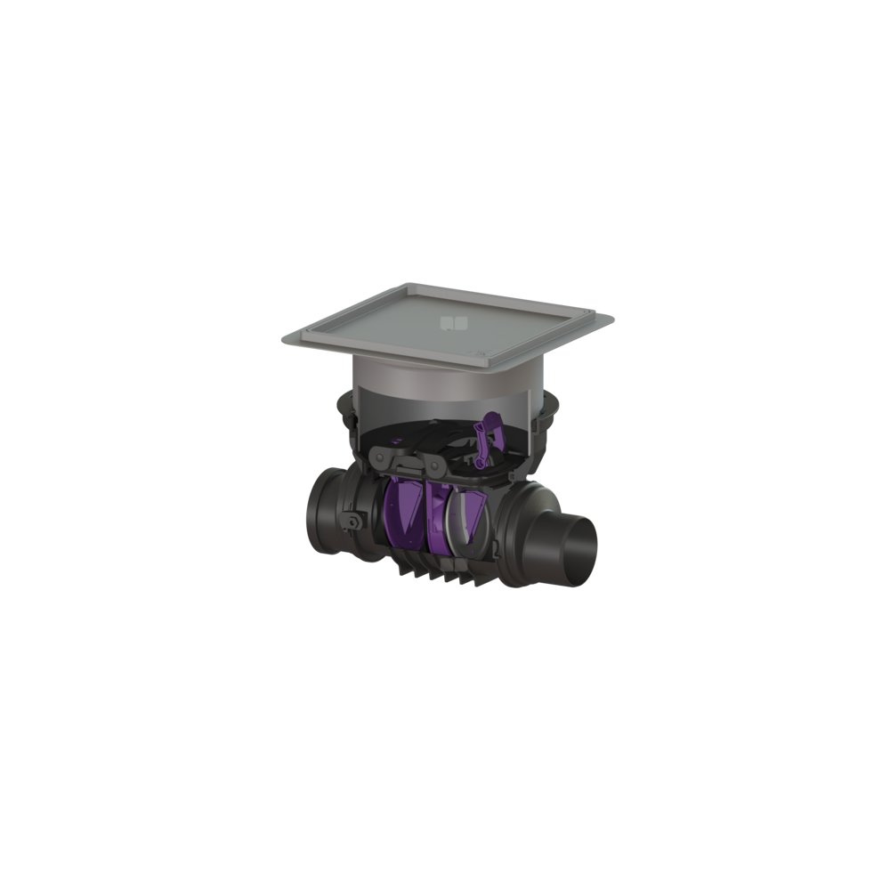 Zawór zwrotny Staufix DN 125 z pokrywą pod płytki z 1 klapą z tworzywa i 1 klapą ze stali nierdzewnej