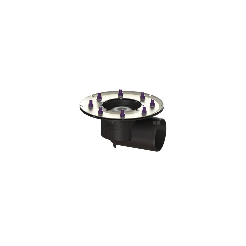 KESSEL Korpus Ecoguss, wielkość nominalna (DN) 100, króciec boczny, odwodnienie przez odpływ punktowy, syfonem w zestawie, zszczelnienie korpusie przez Dociskowy kołnierz uszczelniający (odpowiedni do tworzenia uszczelnień wodoszczelnych)