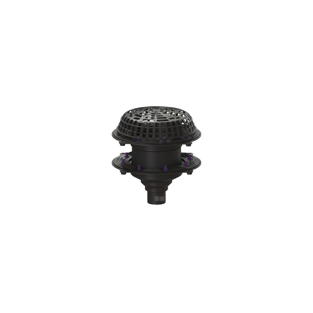 Wpust dachowy Ecoguss służy do odwodnienia punktowego i jest wyposażony w dociskowy kołnierz uszczelniający i osłonę przed żwirem. Przystosowane do recyklingu tworzywo kompozytowe Ecoguss spełnia najwyższe wymagania akustyczne, jest odporne na agresywne czynniki, odporne na temperaturę do 400°C i korozję. Dociskowy kołnierz uszczelniający z bolcami i śrubami ze stali nierdzewnej służy do dociskania lub zgrzewania taśm bitumicznych i polimerowo-bitumicznych oraz taśm uszczelniających z tworzywa sztucznego i elastomerów. Do uszczelnień wodoszczelnych mogą być stosowane tylko sprawdzone przez producenta membrany hydroizolacyjne. Wyrównanie potencjałów nie jest konieczne. Wskazówka: W przypadku dachu trapezowego o powierzchni przekraczającej 2500 metrów kwadratowych należy skonsultować się z centrum serwisowym firmy KESSEL.