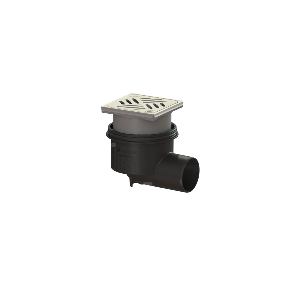 KESSEL Wpust obiektowy Ecoguss, wielkość nominalna (DN) 70, króciec boczny, typ pokrywy Kratka design, syfonem w zestawie, z regulowaną wysokością, maks. wys. posadzki 16 mm, zamknięcie Lock & Lift