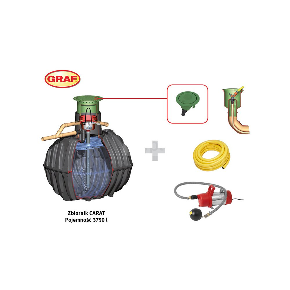 OGRÓD KOMFORT CARAT 3750L - podziemny zbiornik na deszczówkę, magazyn wody deszczowej, zestaw ogrodowy do magazynowania wody deszczowej, zestaw do podlewania ogrodu , zbiornik na wodę deszczową , pompa zatapialna , filtr wewnętrzny
